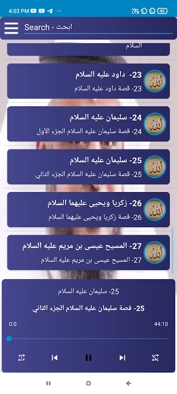 Een applicatie die verhalen van de profeten bevat met de stem van Sheikh Nawaf Al-Salem in een klein formaat