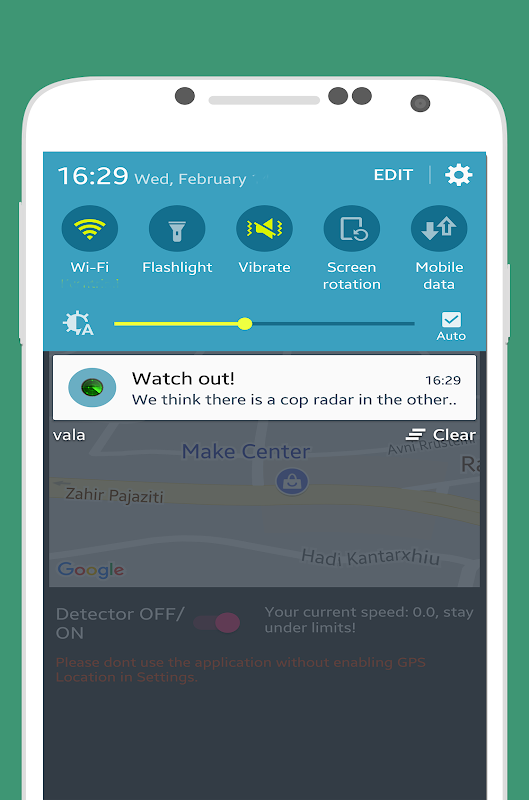 تطبيق الرادار سهل للاستعمال و مجاني و يشتغل بدون انترنت تطبيق مفيدة للأصحاب السيارة عند وضعه في سيارة يقوم بتقديم على تنبيهات في الوقت الحقيقي لفخاخ الرادار المتنقل و مواقع كاميرات السرعة المثبتة