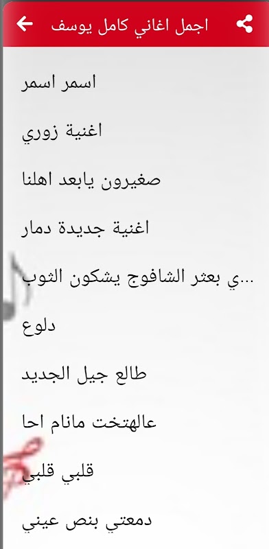 يحتوي التطبيق على اكثر من ٢٥ اغنية للمطرب كامل يوسف