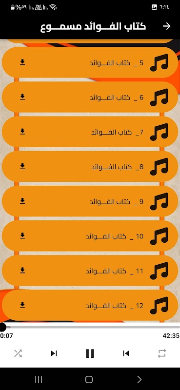 🟢 The interface of the Kitab al-Fawa'id by Ibn al-Qayyim audio program is very simple, which enables you to use the program with ease and ease, as well as the ease of navigating between the pages of the Kitab al-Fawa'id by Ibn al-Qayyim application.