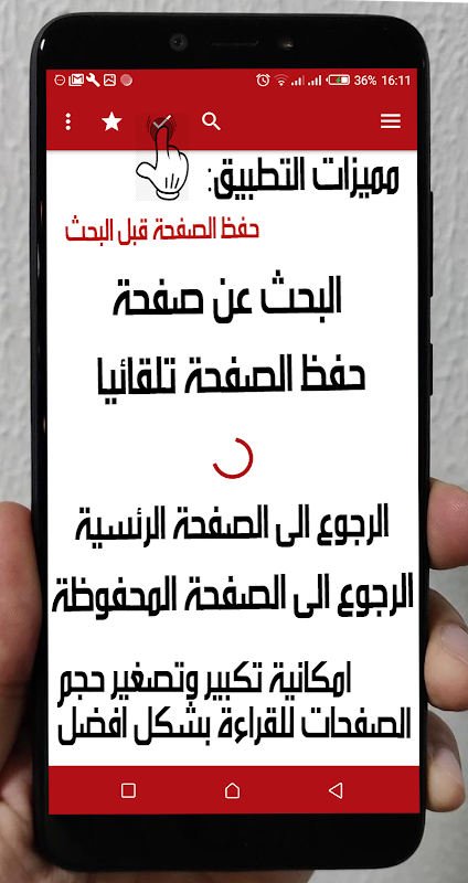 ✔ حفظ الصفحة : ( حتى وان اغلقت التطبيق او اغلقت الهاتف سترجع الى المكان الدي وقفت فيه دون الحاجة الى البحث عن المكان الدي وصلت اليه )