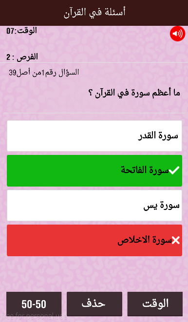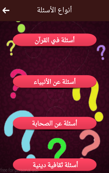 اللعبة تقدم لكم أربعة أصناف من الأسئلة الدينية: