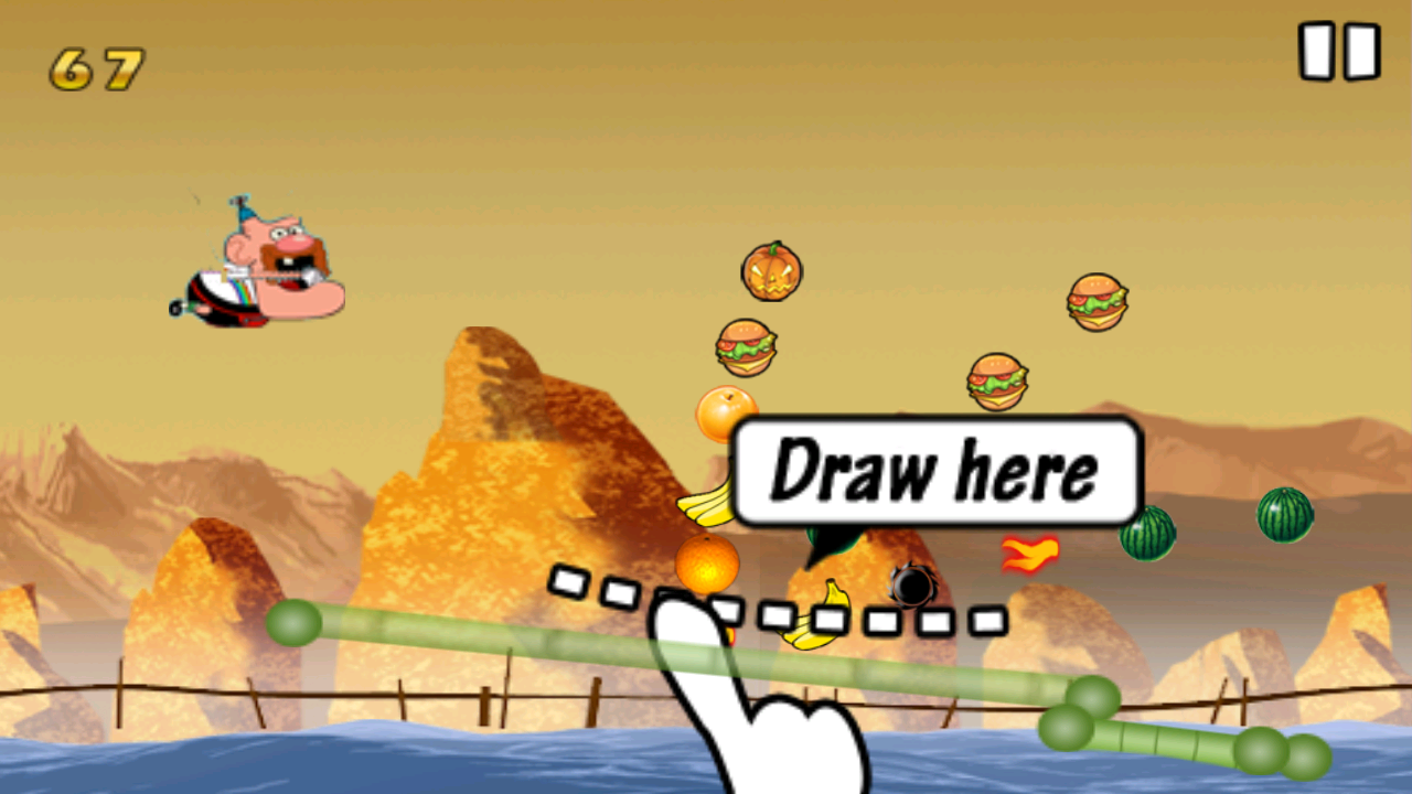 العم جدو لعبة قفز خفيفة للأطفال والكبار سهلة التحكم عن طريق رسم اشكال من الخيزران لمنع العم جدو من السقوط ومساعدته على جمع اطعمته المفضلة من فواكه و سندويتشات و مربى الفستق و البندق