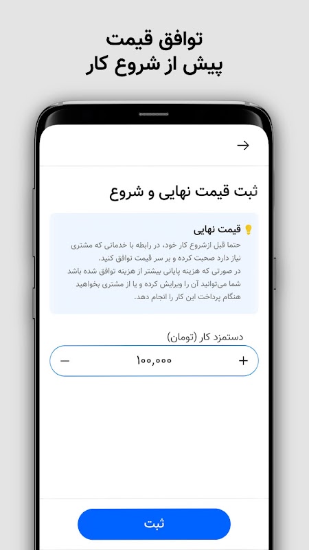 • تعیین قیمت خدمات توسط متخصص در بازه قیمتی مشخصشده