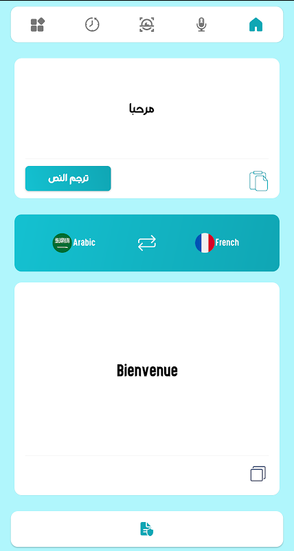 المترجم عربي فرنسي يحتوي على خاصية الترجمة بالكاميرا وايضا عن طريق الكتابة والصوت