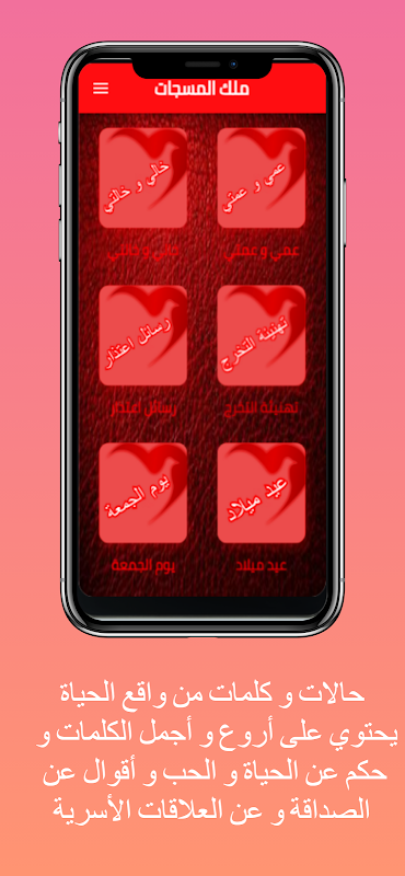 - يحتوي التطبيق على الكتير من الاقسام والعبارات الجميلة المتداولة بين الاشخاص والازواج والاحباب والعشاق