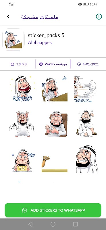 في هذا التطبيق ستجد العديد من ملصقات واتساب متحركة عربية (Arabische geanimeerde stickers - WAStickerApps Arabia) الملصقات الرائعة الخاصة بالواتساب التي يمكن اضافتها الى التطبيق بكل سهولة وهناك من يطلق عليها ستيكرات واتساب.