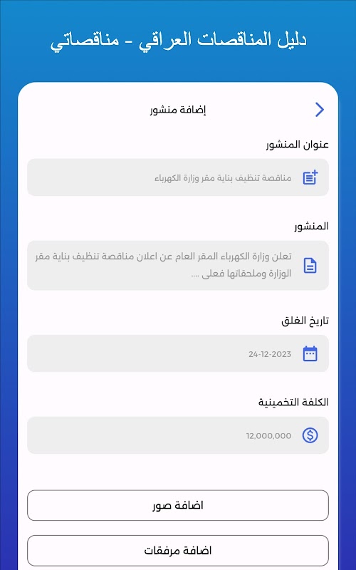 Wij geven informatie over overheids- en niet-gouvernementele aanbestedingen en veilingen in Irak.