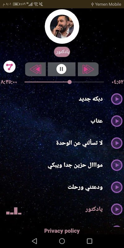 وفي الاخير نشكرك على اختيارك تطبيق نعيم الشيخ من اجل الاستماع الى الاغاني الموجودة.
