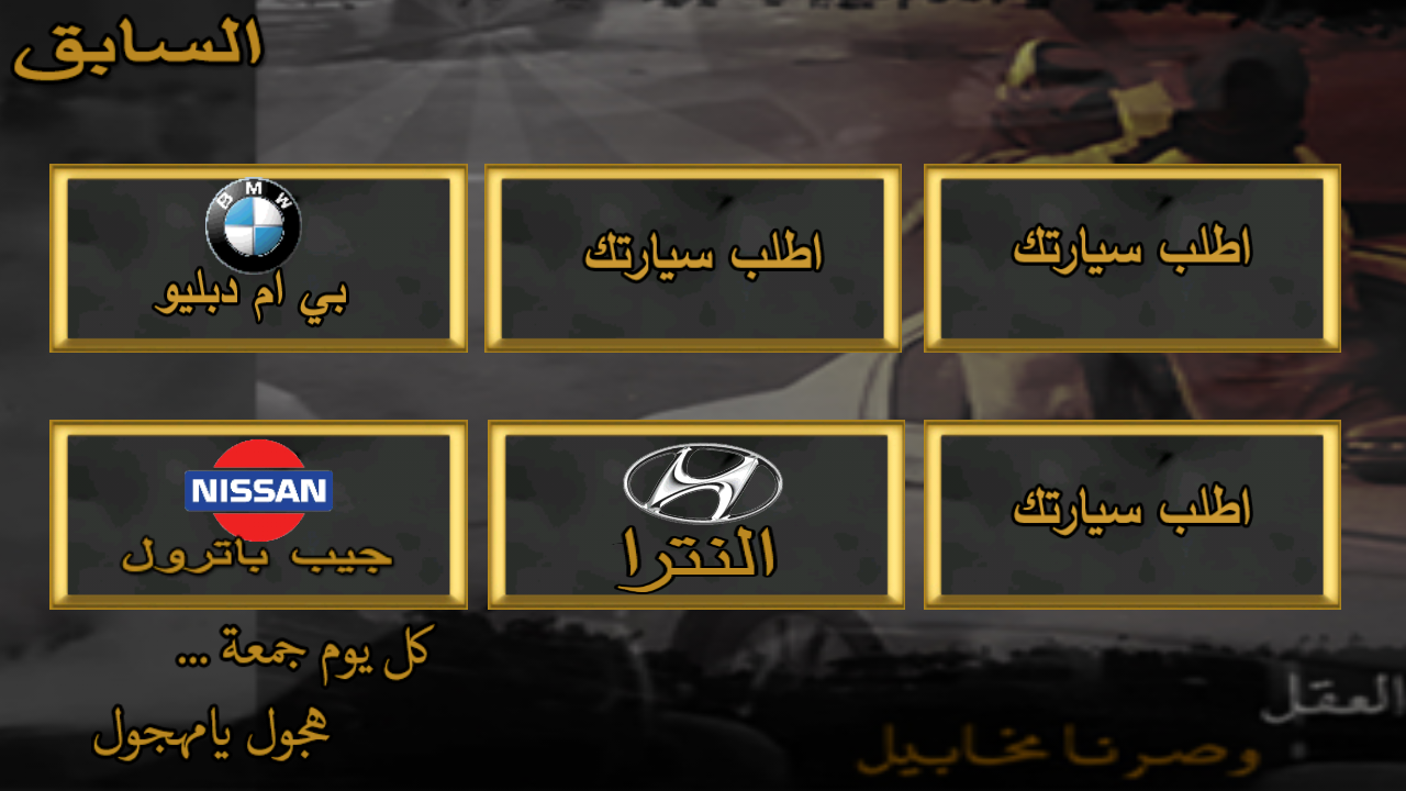 * يوجد بالإصدار الاول 3 سيارات كورلا,ددسن,هونداي وسيتم أضافة المزيد أسبوعياً.