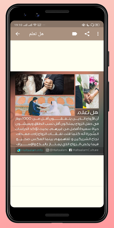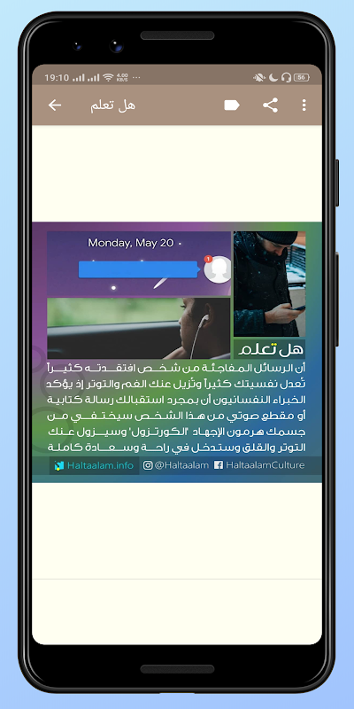 هل تعلم تطبيق يمكنك من الإقتراب إلى عمق المعلومة بشكل سلس و دون تعقيد، كما يوفر لك تطبيق "هل تعلم" فرصة مشاركة المعلومات عن طريق الوسائل التواصل الإجتماعي أو حفظ المعلومة إلى مفضلتك.