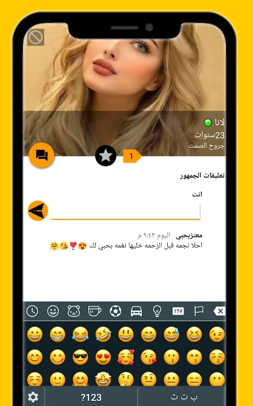 يحتوي التطبيق على قسمين رئيسيين; قسم لغرف الدردشه وقسم للحالات الكتابية. حيث إن كل قسم بدوره يحتوي على العديد من الأقسام الفرعية مثل قسم حكم، حب، حزن، صداقة ...إلخ