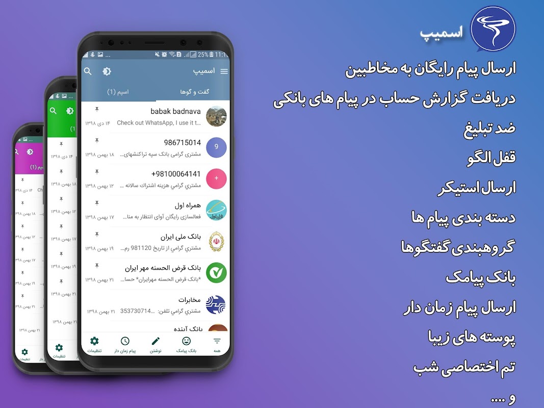 پیام رسان اسمیپ ،بانک پیامک ، پشتیبانگیر، خلافی 2.0.3