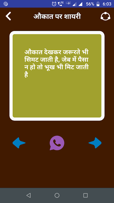 - One touch next previous view for read Aukaat shayari