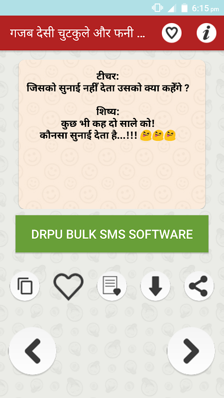 गज़ब देसी चुटकुले और फनी कॉमेडी हिन्दी जोक्स is een gratis app met een breed scala aan allerlei nieuwste Hindi-grappen voor vrienden en familie die het meest geliefd zijn bij Indiase mensen.