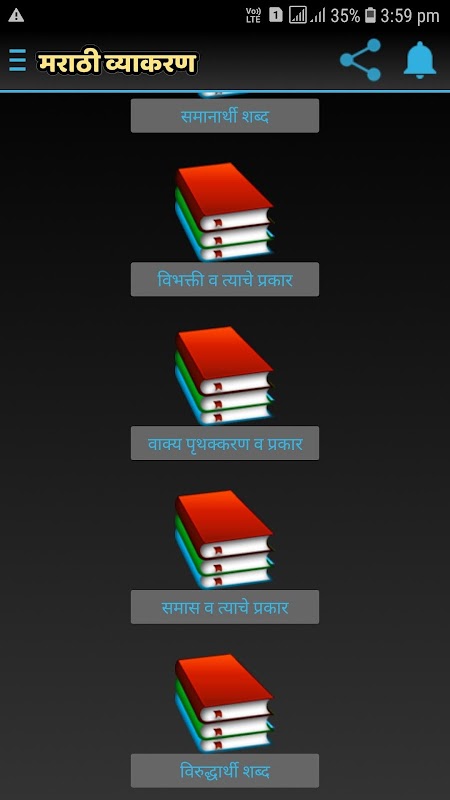Marathi Vyakaran(Marathi Grammar) application describe many grammar topics in detailed in Marathi language.