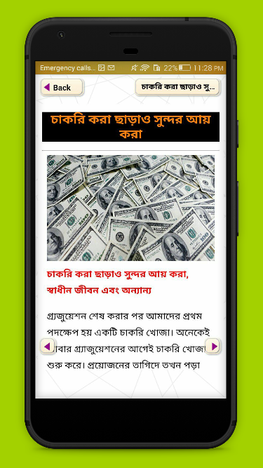Tegenwoordig is het online inkomen gemakkelijker dan ooit en het online inkomen in Bangladesh groeit snel, het online inkomen op mobiel is nu ook mogelijk Het online zakendoen resulteert in een online inkomen. Een ander type online inkomen is freelancen. Van onze online inkomen geld app kun je leren over al deze soorten online inkomen freelance training app en word een freelancer. U kunt kennis hebben van grafisch ontwerp en webdesign en kunt een grafisch ontwerper en webontwikkelaar worden. U kunt ook leren over e-commerce en ook over het verdienen van admob. U kunt ook de tutorial over admob zien. Dus als je onze app leuk vindt, deel hem dan met je vriend en laat hem of haar door de wereld van online inkomsten bladeren.