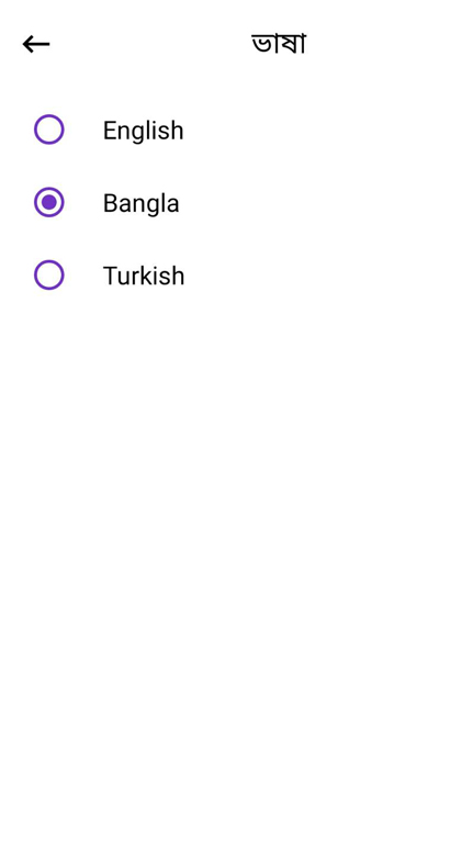 • Lijst met alle Surah-namen in Bangla en Arabisch.