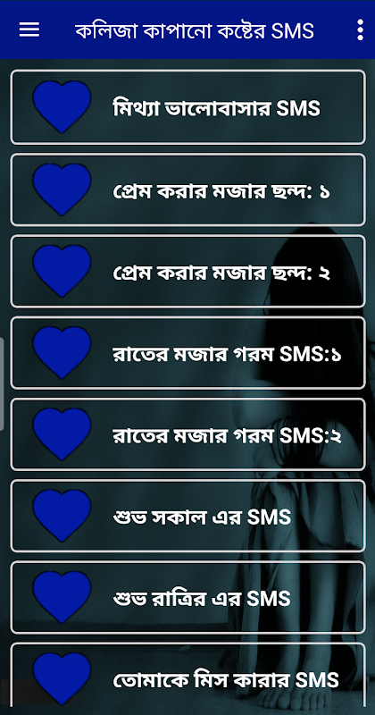 যারা মিথ্যা ভালোবাসায় কষ্ট পেয়েছে তাদের কষ্ট গুলো নিয়েই আমাদের এই কষ্টের SMS অ্যাপসটি।যা পরলে নিজেকে কিছুটা হলে সান্তনা দিতে পারবেন।