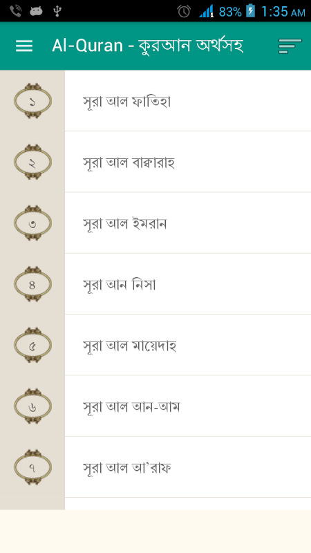 Bangla Quran is a Smartphone application designed to facilitate the native speakers of Bangladesh with the divine teachings of Quran. This Application has embedded with authentic translation, transliteration, and audio recitation of entire 114 Surahs of Quran e Kareem.
