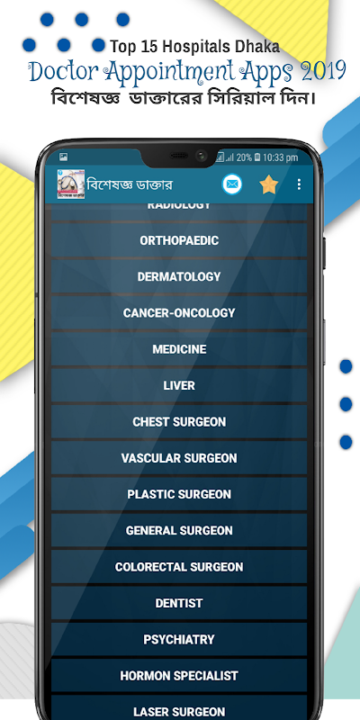 het is de eerste toepassing ooit in Bangladesh voor dokter afspraak in een gerenommeerd ziekenhuis, deze applicatie ontwerp prachtig en geaccumuleerde alle speciale arts volgens zijn specialiteit op hun website, we zijn te veel goede hoop door onze applicatie coz het is zeer effectief voor u