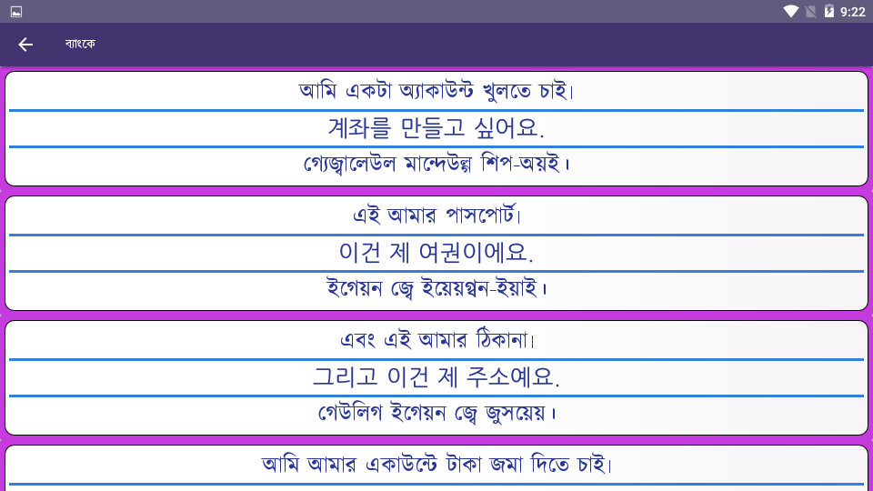 আমি এই অ্যাপে কোরিয়ান ভাষার কিছু ধারনা দিতে চেষ্টা করেছি। যেমন,
