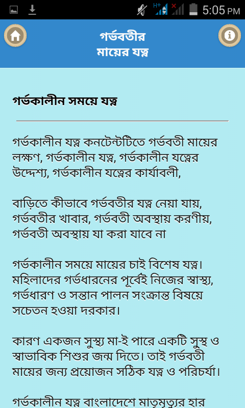 Pregnant period is the sensitive time for mother. During this time a mother should be got special cares. She should take healthy food such as vegetables , egg, milk etc moderately. However, this app contains all the new mother and pregnancy care tips. Besides mother should be taken regularly to doctor for regular check up. During this time a mother should be careful when she moves here and there.