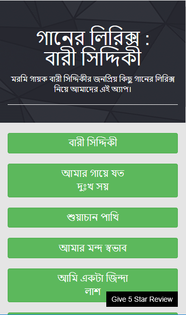 মরমি গায়ক বারী সিদ্দিকীর জনপ্রিয় কিছু গানের লিরিক্স নিয়ে আমাদের এই অ্যাপ।