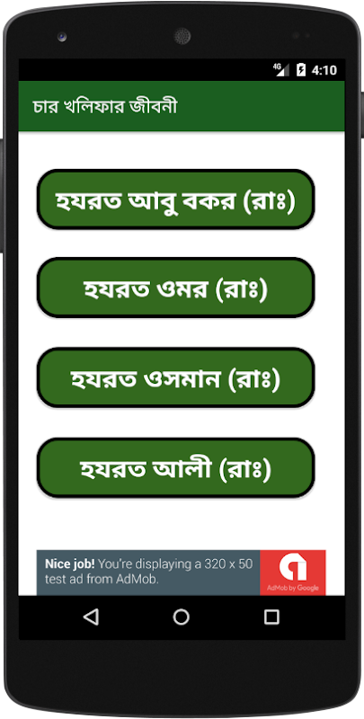 বিঃদ্রঃ চার খলিফার জীবনী অ্যাপটির কনটেন্টগুলো মানসম্মত ওয়েবসাইট থেকে সংগ্রহ করা হয়েছে। যদি কনটেন্ট ওনার এর কোন প্রকার আপত্তি থাকে তাহলে দয়া করে আমাদেরকে জানান, আমরা আপনার কনটেন্ট 24 ঘন্টার মধ্যে অ্যাপ থেকে সরিয়ে ফেলব। ধন্যবাদ