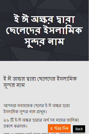 সুন্দর ইসলামিক নাম একটি শিশুর জন্য খুব গুরুত্বপূর্ণ বিশেষ করে মুসলমানদের জন্য ইসলামিক নাম রাখা যেমন তার ইসলামের প্রতি ও ধর্মের প্রতি আনুগত্য প্রকাশ পায় তেমনি সওয়াব ও হয়। এর মাধ্যমে একজন পাপী বান্দাকেও আল্লাহ চাইলে বেহেস্তে নিতে পারেন। তাই সকল মুসলমানদের উচিত ইসলামি নাম রাখা। আজ আমরা আপনাদের জন্য ছেলেদের ইসলামিক নাম ও অর্থ এই অ্যাপটি নিয়ে হাজির হয়েছি। এই অ্যাপটিতে আপনারা ছেলেদের (chaleder name) কিছু ইসলামিক অতিব সুন্দর নাম অর্থসহ পাবেন। শুরুতেই ছেলেদের সুন্দর ইসলামিক নাম (Cheleder islamic name) নিয়ে কিছু কথা বলা যাক। নির্দিষ্ট একটি নাম হল মানুষকে প্রাথমিকভাবে চেনার প্রথম উপায়। নামের ব্যাপারে বিশিষ্ট ব্যক্তিগন বলেছেন নাম আর কিছুই নয় কেবল একটি শব্দ। যা দিয়ে বোঝা যায় বহুর মধ্যে একজন আরেকজনকে আহব্বান করছে। নাম মানুষকে বিখ্যাত করেনা বরং মানুষ বিখ্যাত হলেই তার নাম সর্বত্র ছড়িয়ে পড়ে।