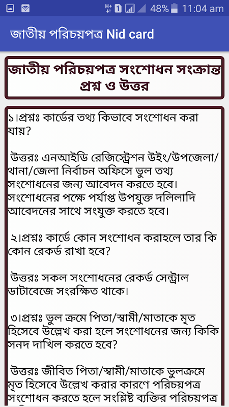 Bangladesh is digitized and improving so quickly. We are improving their economic and technology condition. Every country use a ID card for their Identification. Bangladesh has started to make a Smart ID Card for the people.In 2 October 2016,smart card delivery has started already. Their are some other issue which is how to find my lost national id card, how can i get my new national id card. How to change incorrect name of id card. All above matters are discussed in this app National Identity Card. This is very useful app which can help you a lot and you will find out the solutions regarding Voter ID.