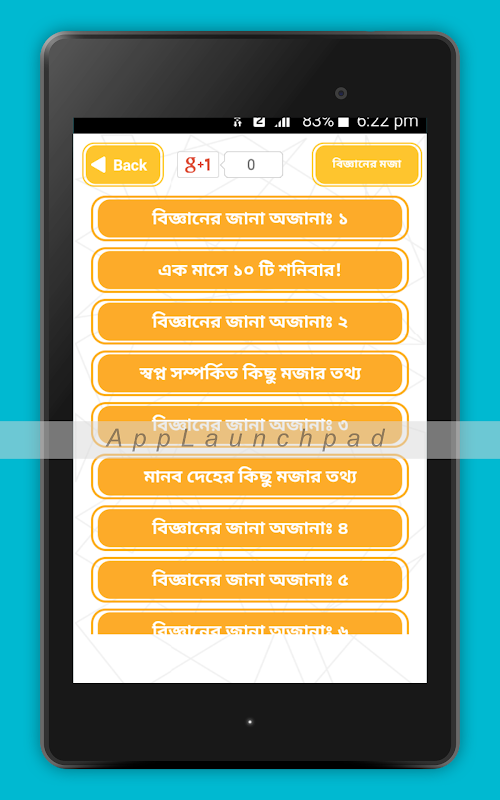 জানা অজানা Jana Ojana সাধারণ জ্ঞান অদ্ভুত মজার তথ্য বিজ্ঞানের অজানা তথ্য নানান মজার তথ্য দিয়ে এই Mojar Biggan মজার বিজ্ঞান অ্যাপটি সাজানো হয়েছে। বিজ্ঞান অনেক মজার একটি বিষয় অথচ অনেকে বিজ্ঞানের নাম শুনলেই ভয় পান। এই মজার বিজ্ঞান Mojar Biggan অ্যাপটি আপনাদের ভয় কাটাতে সাহায্য করবে আশা করছি। ডাউনলোড করুন আর উপভোগ করুন মজার বিজ্ঞান। Fun Science is niet zoals science fiction (সাইন্স ফিকশন), eerder een groot boek (বিজ্ঞান বই). Veel experipents en informatie worden hier verstrekt.