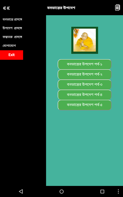 Eerwaarde Indragupta Vante nam de religieuze preken op die de Eerwaarde Sadhanananda Mahasthavir (Banvante) tijdens zijn leven aan de asceten en monniken hield, stelde later de preken samen en publiceerde een boek genaamd "Banvante's Dharmadeshana". Android-apps zijn gemaakt voor het gemak van de lezers door de essentie van de belangrijkste preken van Pujya Vanabhant te halen uit het samengestelde boek van dominee Indragupta Bhanta en het boek "Upadesh Bani", samengesteld door Srimat Anandajagat Bhikshu. Voorlopig is de app gemaakt door 100 adviezen toe te voegen, maar we zullen proberen tijdens de volgende update meer adviezen toe te voegen. Uw suggesties zijn welkom om de kwaliteit van de apps te verbeteren. Bedankt.