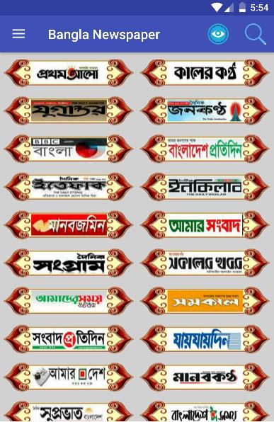 Bangla-krant is een populaire Android-app. De gebruiker heeft toegang tot alle Bangla-krantsites die populair zijn in de wereld. U hoeft niet veel apps te installeren. Installeer deze apps en geniet van alle populaire Bangla-krantsites. Deze app slaat je telefoongeheugen en RAM op.