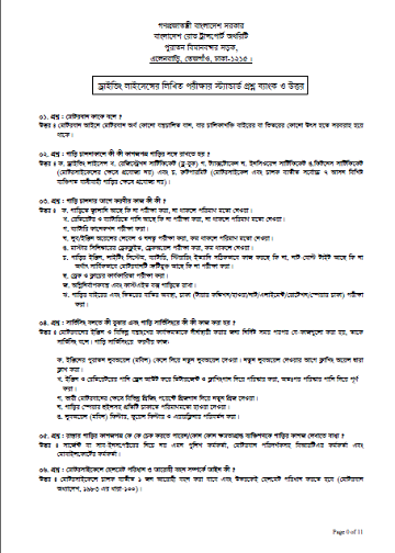 + ড্রাইভিং লাইসেন্সের লিখিত পরীক্ষার প্রশ্নপত্র