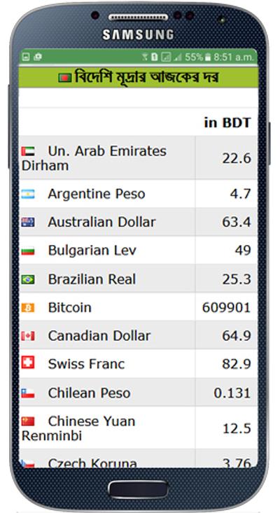 ডলার, ইউরো, পাউন্ড, রিয়েল বা রিংগিত ইত্যাদি সকল বিদেশি মুদ্রার বাংলাদেশি টাকায় বিনিময় মূল্য জানতে পারবেন।