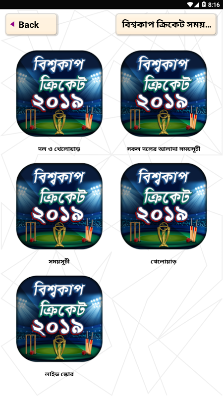 Oude versies van বিশ্বকাপ ক্রিকেট ২০১৯