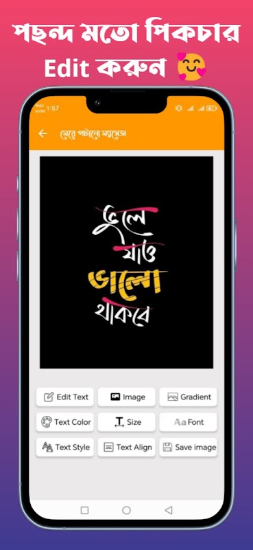 Ik denk dat het een goede keuze is এডিট বাটনে ক্লিক করলে যে বিষয়গুলো পাবেন - Tekst bewerken, afbeelding uploaden, verloop, tekstkleur, grootte , Lettertype, Tekststijl, Tekst uitlijnen, Afbeelding opslaan