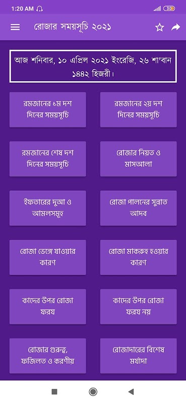 রমজানের সময় সূচি ও ক্যালেন্ডা 1.0.2