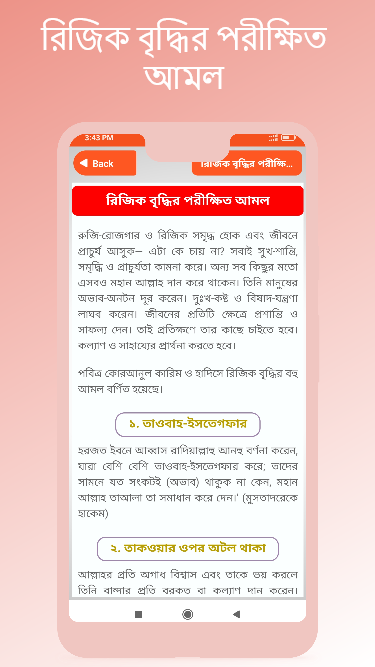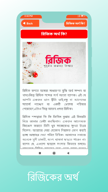 আমাদের এই অ্যাপ থেকে আর জানতে পারবেন- কেন হালাল রিজিক ইবাদত কবুলের পূর্বশর্ত, রিজিক কমবেশি কেন হয়?, যেসব কারণে রিজিকের বরকত কমে যায়, রিজিক বৃদ্ধির কুরআনি আমল, রিযিক সম্পর্কিত আয়াত, আত্মীয়তার সম্পর্কে বরকত, যে চৌদ্দটি আমলে রিজিক বাড়ে, রিজিক বৃদ্ধির পরীক্ষিত ও পরিশেষে রিজিক সম্পর্কে হাদিস।
