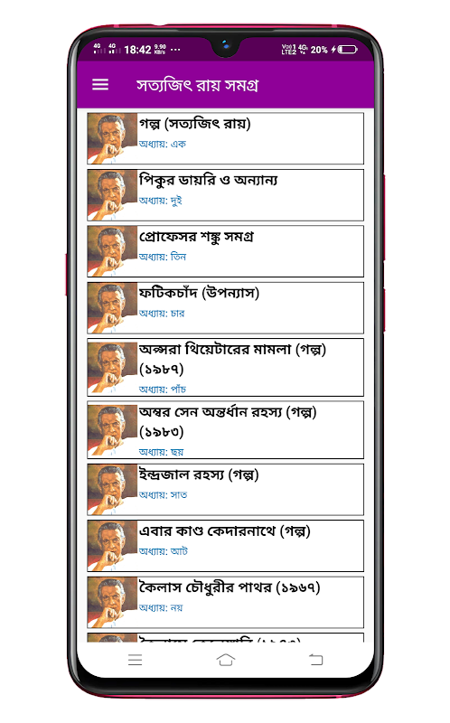 সত্যজিৎ রায় সমগ্র - অ্যাপটিতে নিম্নলিখিত বিষয়গুলি রয়েছে।
