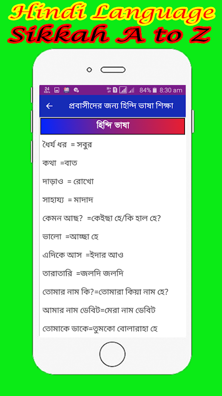 প্রবাসীদের হিন্দি ভাষা শিক্ষা দেওয়ার লক্ষ্যে নিয়ে আমাদের আজকের আয়োজন “হিন্দি ভাষা শিক্ষা “ অ্যাপটি। প্রবাসী আছেন যারা অনেকেই হিন্দি ভাষাভাষী বিভিন্ন দেশে বসবাস করেন তাদের জন্য হিন্দি ভাষা শিক্ষা নেওয়া খুবই জরুরি। তাই খুব সহজেই যাতে হিন্দি ভাষা শিক্ষা নিতে পারেন সেজন্য আমাদের অ্যাপটি তৈরি করা হয়েছে। হিন্দি ভাষা শিখতে হলে আজই আমাদের অ্যাপটি ডাউনলোড করুন।