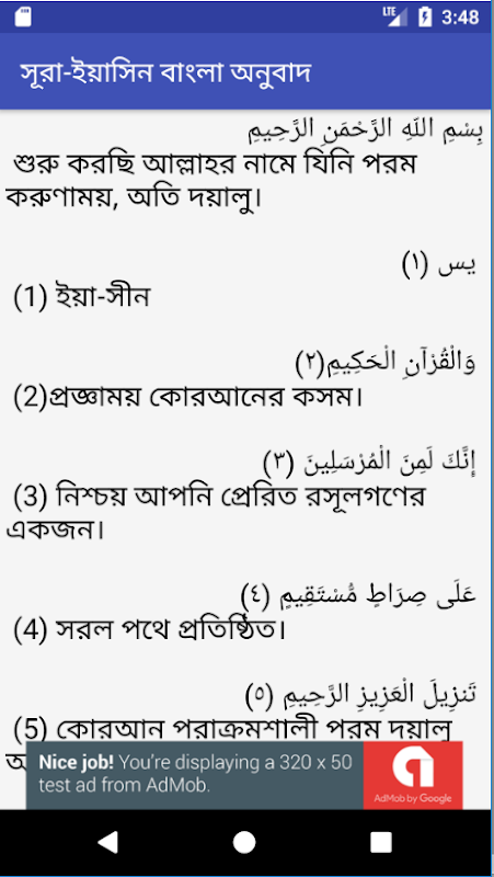এই অ্যাপটির মাধ্যমে আপনারা বাংলা অর্থ সহ- সূরা-ইয়াসিন, আর-রহমান, সূরা মূলক, আয়তুল কুরসি, সূরা হাসর এর প্রজিলত সহ বাংলা আনুবাদ জানতে পারবেন।