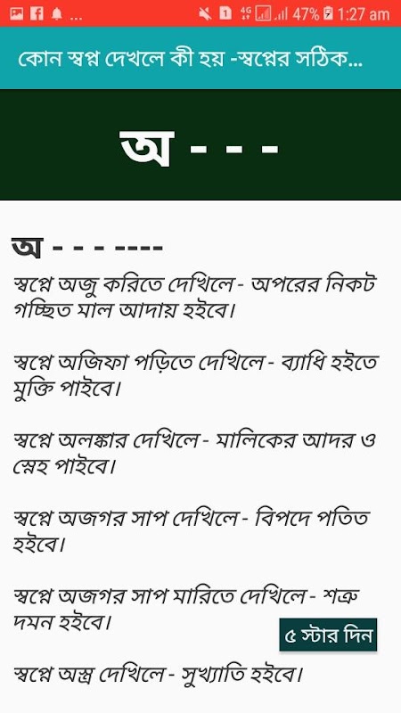 আ - - -- - অক্ষর দিয়ে শুরু যত স্বপ্নের ফল