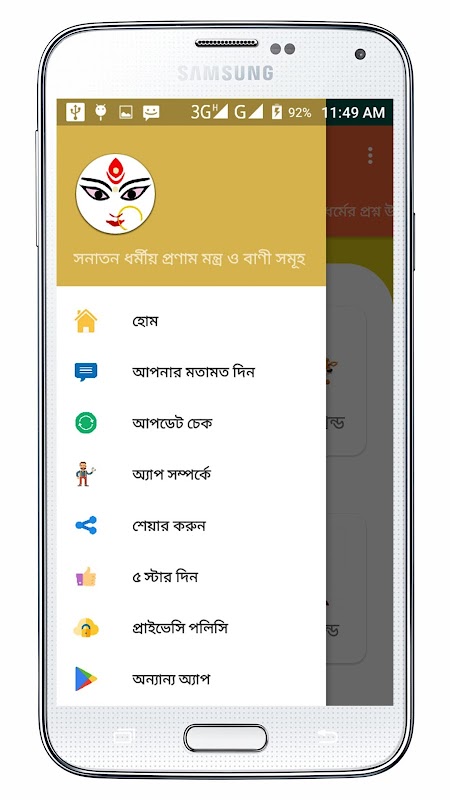 De app bevat traditionele religieuze uitspraken, mantra's en vragen.