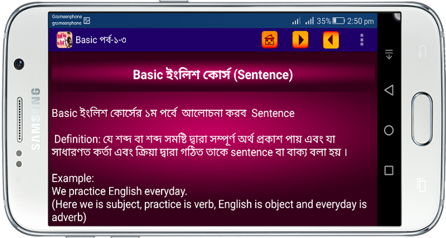 Engels leren in Bangla is een nuttige en educatieve app in Bangla die u zal helpen naar het Engels te Bangla gesproken. Het is een Engels sprekende cursus in Bangla voor degenen die niet kunnen lezen, schrijven of spreke goed Engels. Het is zeer nuttig voor Bangali mensen. Dit boek heeft 20 lessen en 2 deel (Basis & Advance)