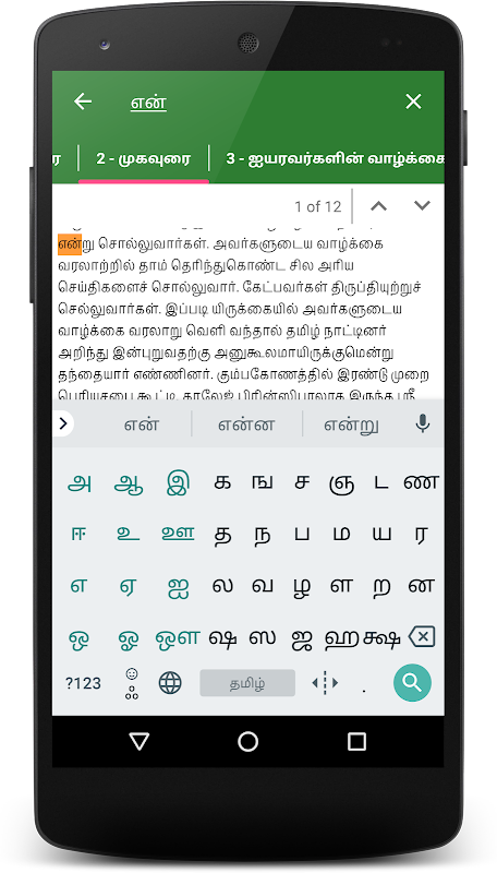 ⇒ We have given both global and page search which will help users to track/search using the exact word in Tamil.