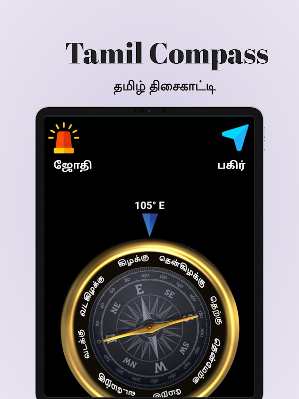 Nauwkeurige Tamil-kompas-app. Werkt offline zonder internet.