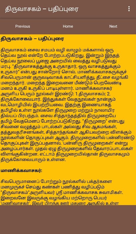 Deze app bestaat uit de volledige versie van "Thiruvasakam" met alle nummers. App is ontworpen met eenvoudige navigatie en index voor individuele hoofdstukken.
