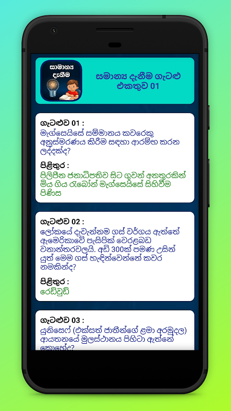 සාමාන්ය දැනුම (Samnya Danima) ගවේෂණය කරනා ඔබ සදහාම වෙන්වූ මෙම App එකට ඔයාලත් දැන්ම එකතු වෙන්න.